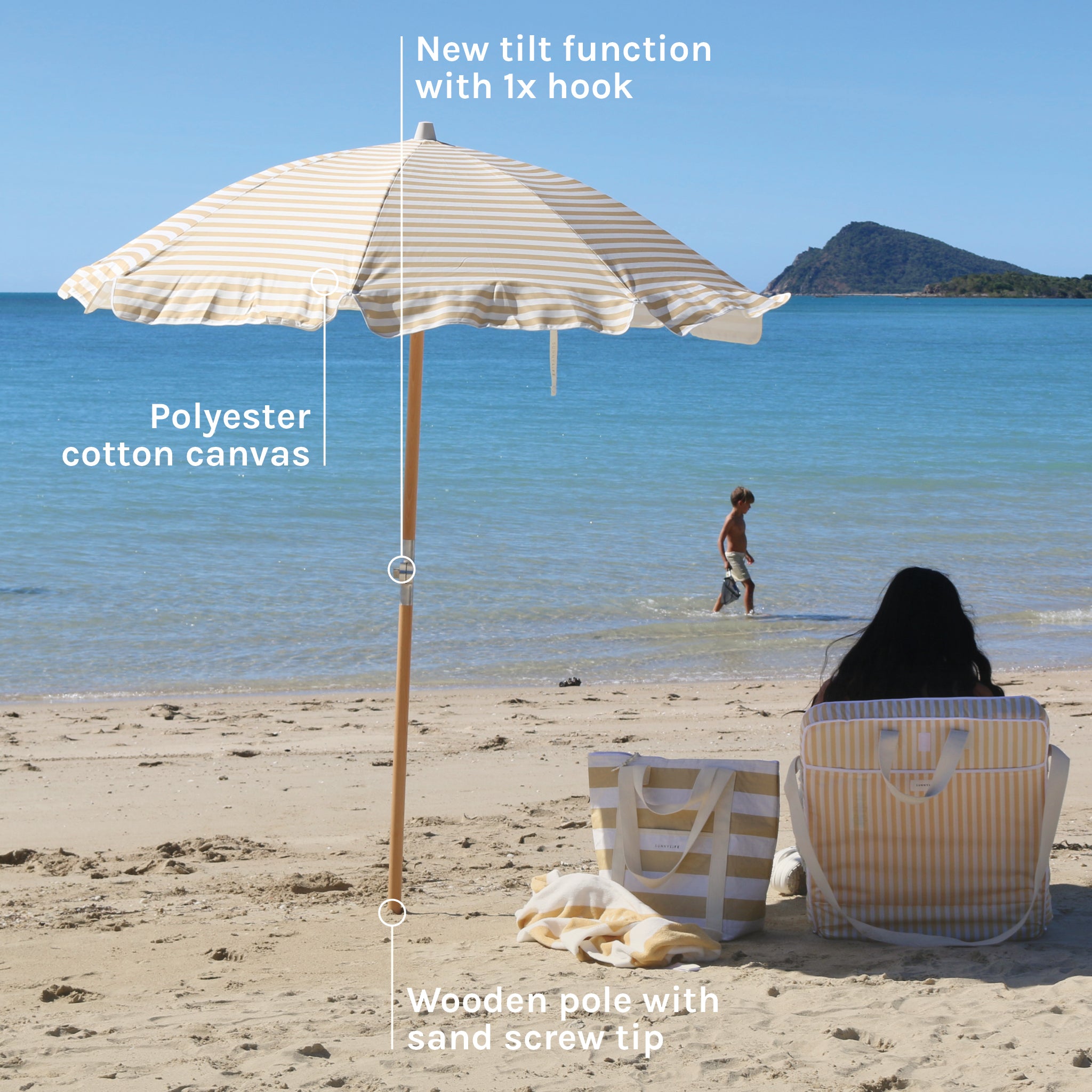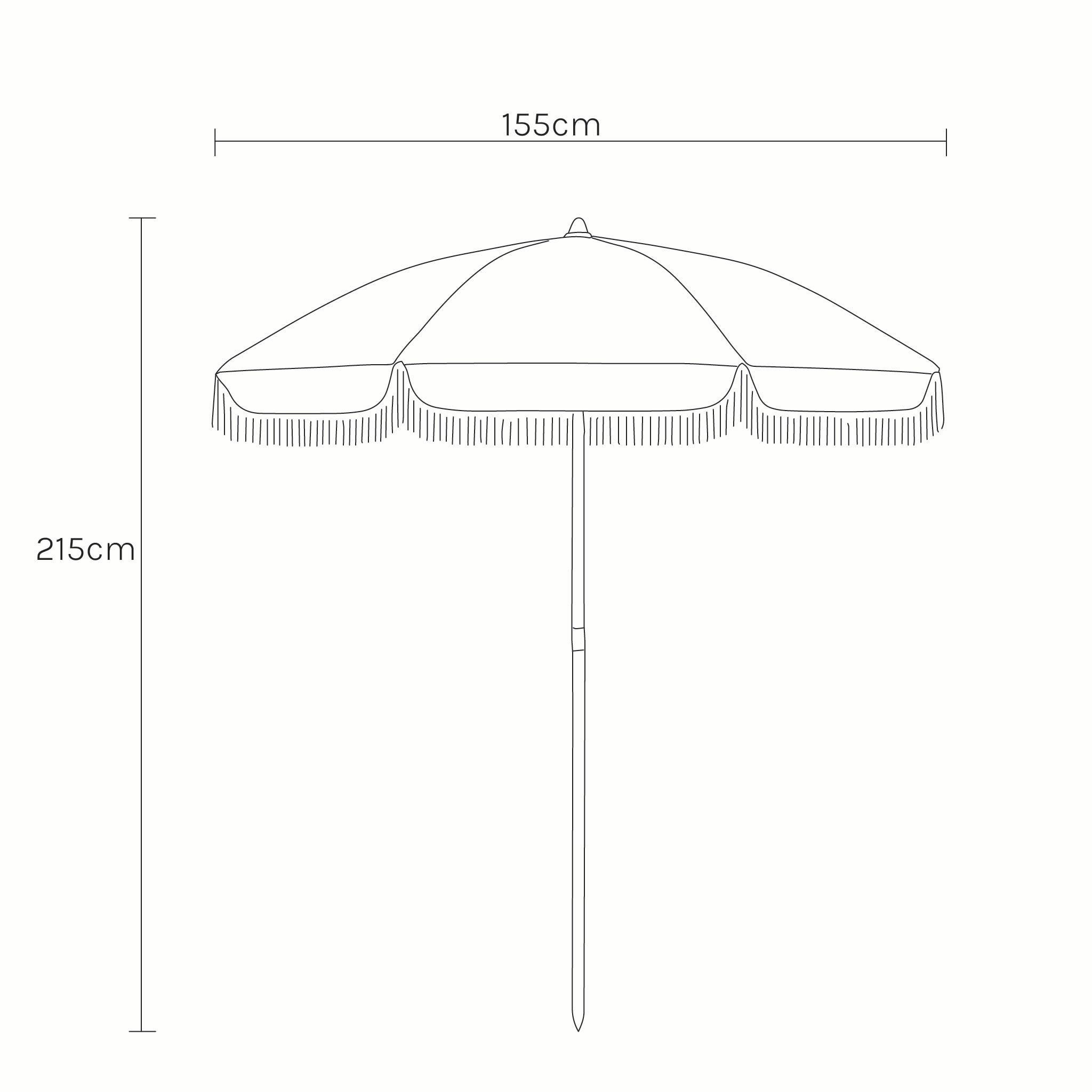 Seek all day shade with the ultimate beach companion. The Luxe Beach Umbrella is functional and chic with space for two to lounge beneath its canopy.