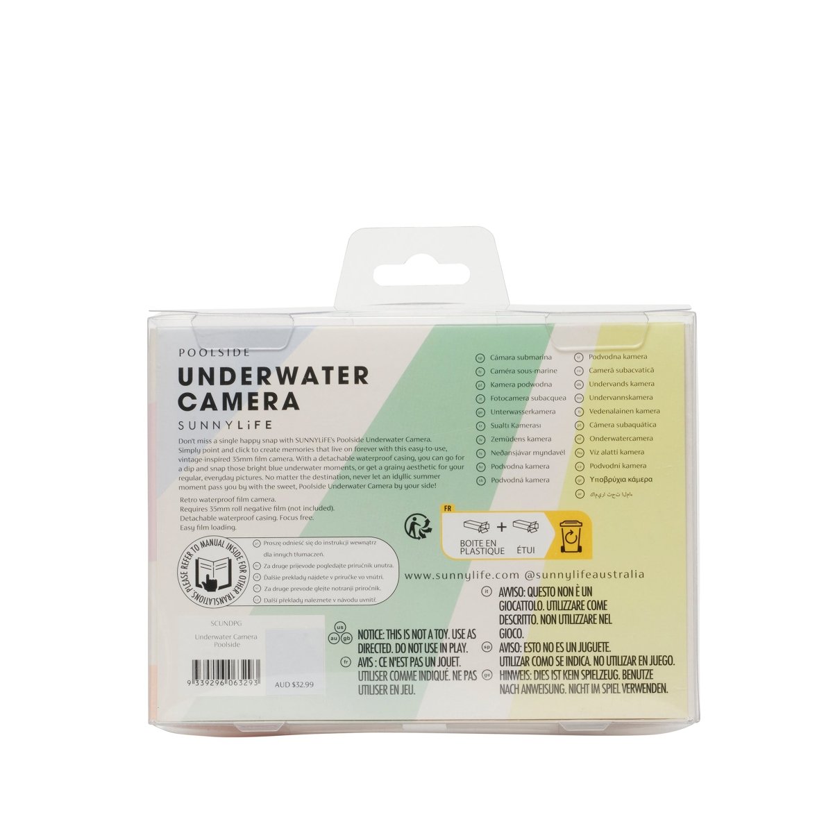 Don't miss a single happy snap with SUNNYLiFE's Pool Side Underwater Camera. Simply point and click to create memories that live on forever with this easy-to-use, vintage-inspired 35mm film camera. With a detachable waterproof casing, you can go for a dip and snap those bright blue underwater moments, or get a grainy aesthetic for your regular, everyday pictures. No matter the destination, never let an idyllic summer moment pass you by with the sweet, Pastel Gelato Underwater Camera by your side!