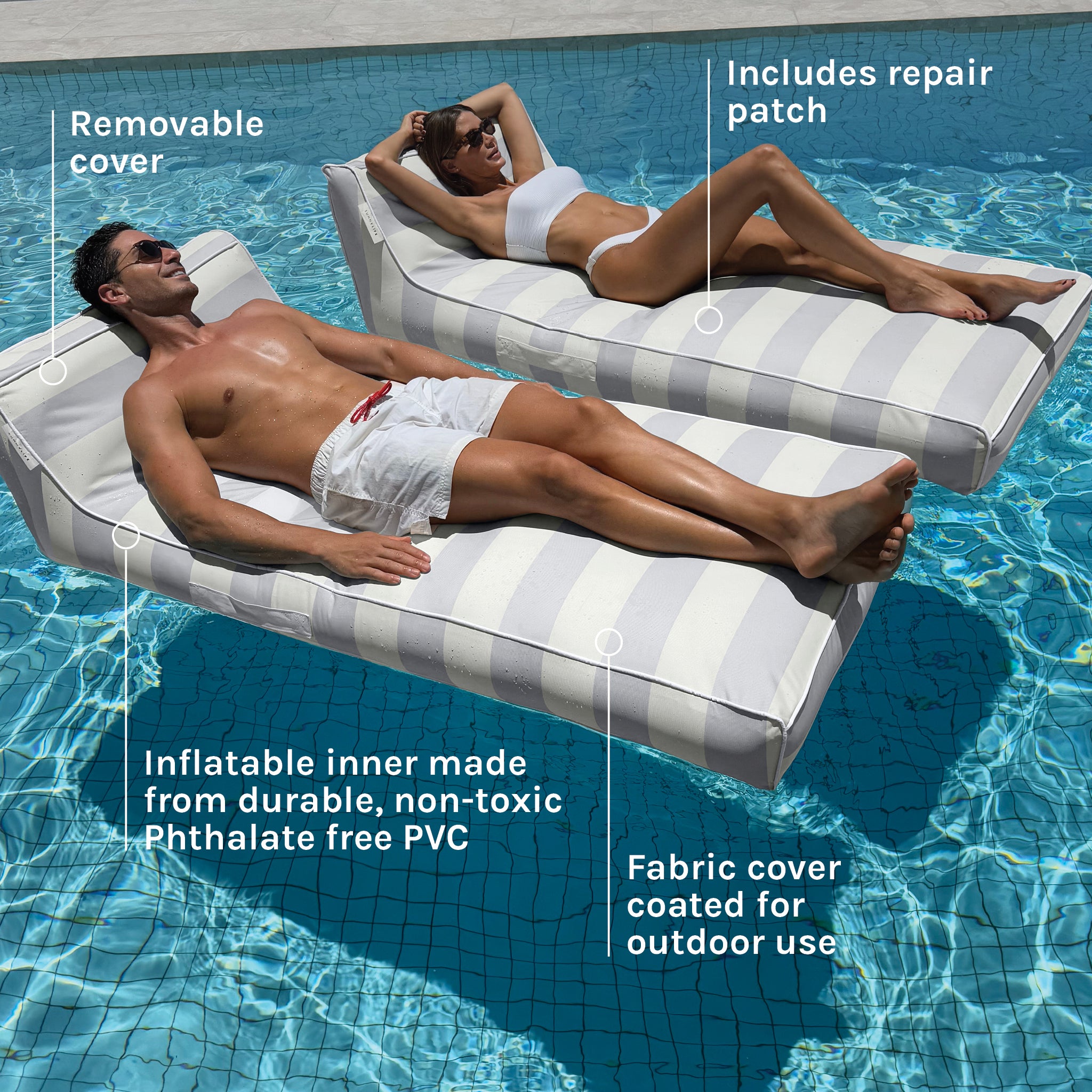 Experience the best of summer where luxury meets leisure. The Luxe Lie-On Lounger Float is stylish, oversized and the ultimate in relaxation. Take delight in simple pleasures and have twice the fun drifting into a daydream.