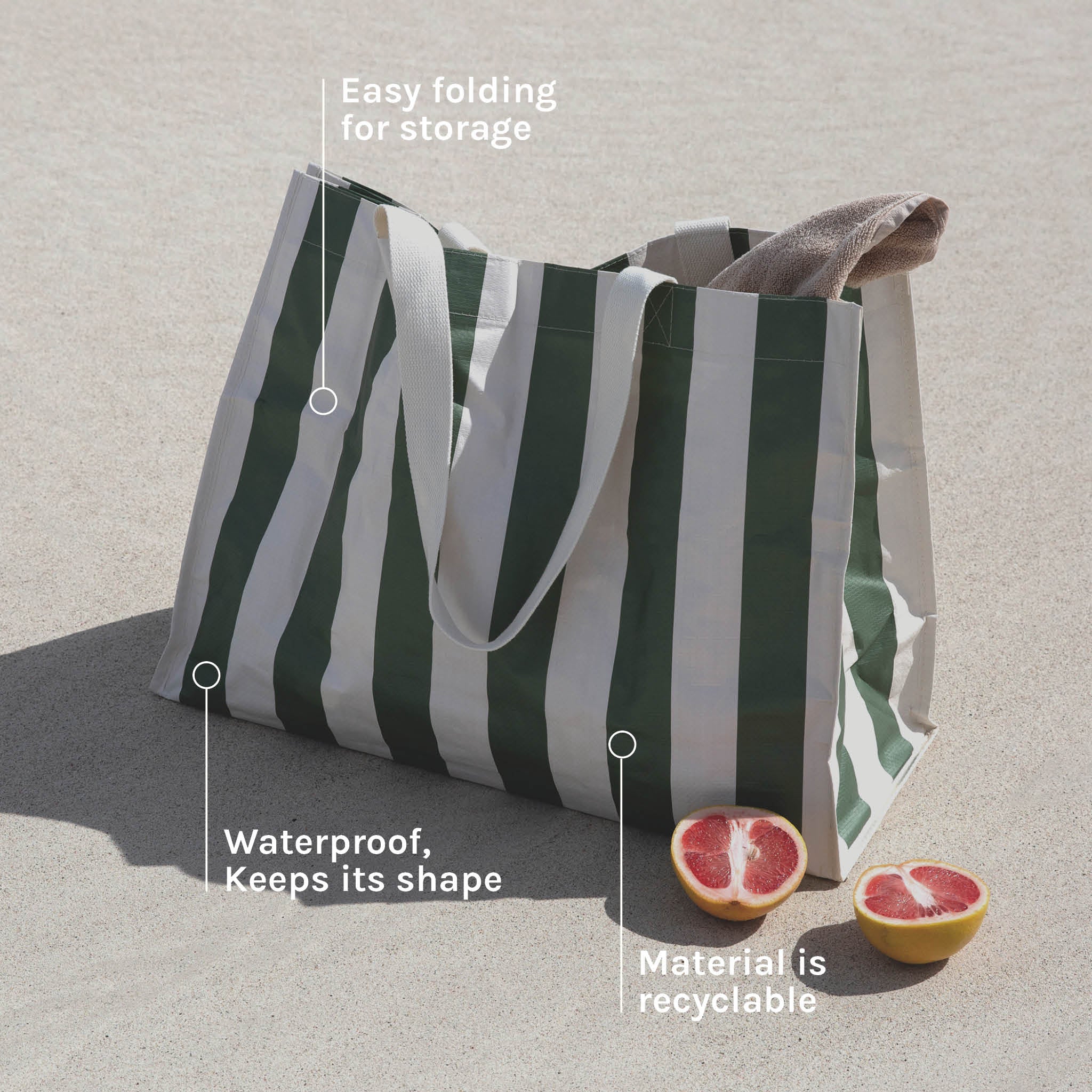 The Carryall Beach Bag is your go-to for sun-filled adventures, holding up to 7kg/15lbs with a sturdy shape that stays firm whether full or empty. Featuring longer cotton straps, a detachable zip pouch, drainage holes, and a recyclable waterproof material, it’s lightweight, durable, and folds flat for easy storage.