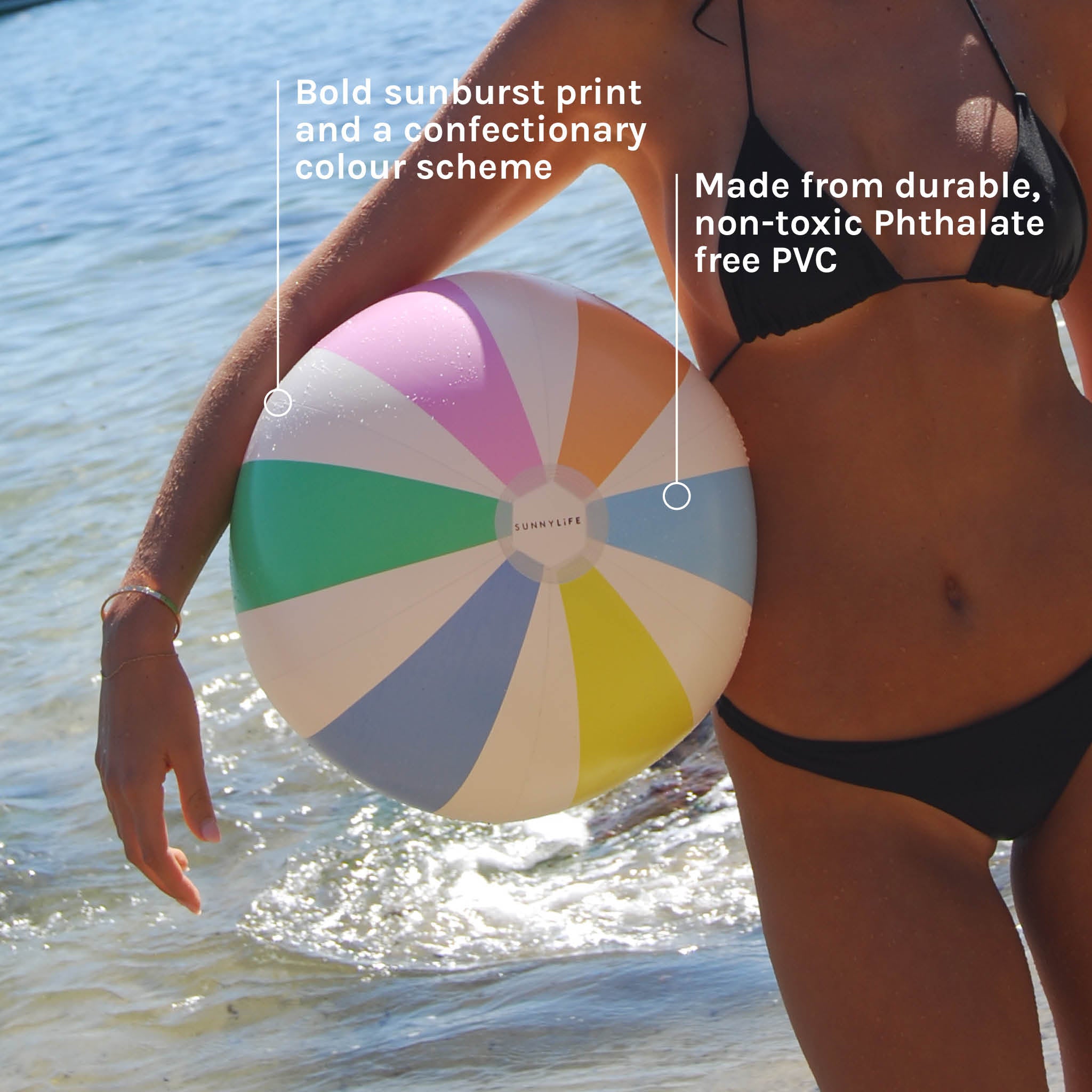 Bounce into action with SUNNYLiFE's Pool Side Inflatable Beach Ball. Featuring a bold sunburst print and a confectionary colour scheme, this old-school staple just got a super sweet makeover. A must-have for a summer of fun, the gelato-inspired Beach Ball is essential for chilled-out beach days and holiday pool parties! Play the day away to pastel perfection with this cute, vintage-style inflatable.