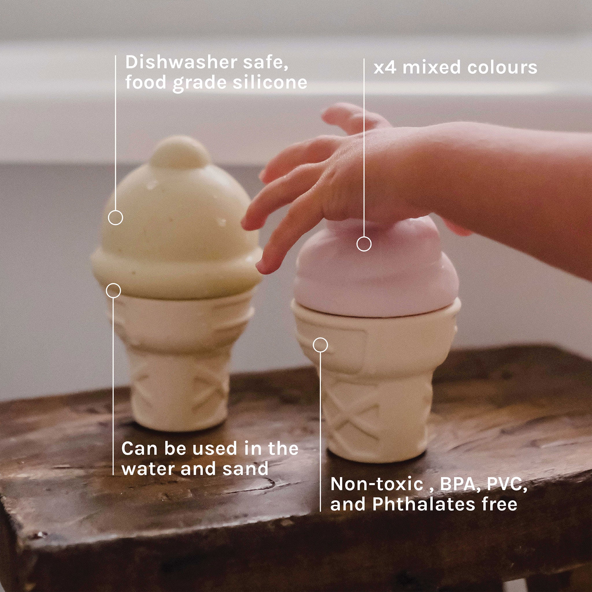 This set of 4 colourful toys floats on water, works in sand, and is made from 100% food-grade silicone BPA, PVC, and phthalate free, dishwasher safe, and super easy to clean.