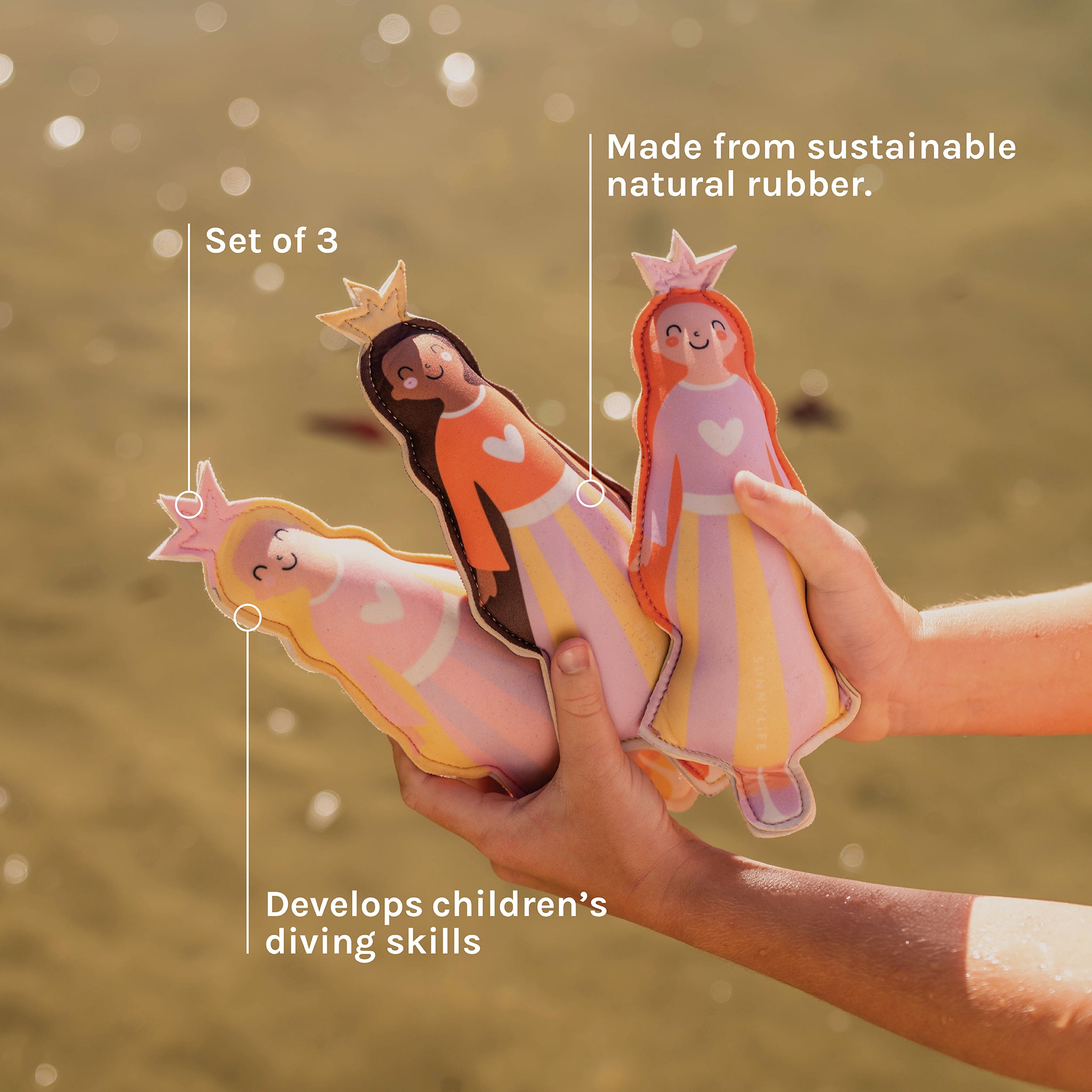 Dive deep into summer with the cutest swimming accessories. The Princess Swan Dive Buddies are designed to encourage little ones to build confidence in the water and develop their diving skills, as well as inspiring imaginative waterplay with friends. Suitable for all skill levels and sure to put a smile on your child's face. Make a splash and experience the best of summer with this set of 3 majestic princess buddies washed over by golden yellow, lilac, and cream and a hint of sweet pink.