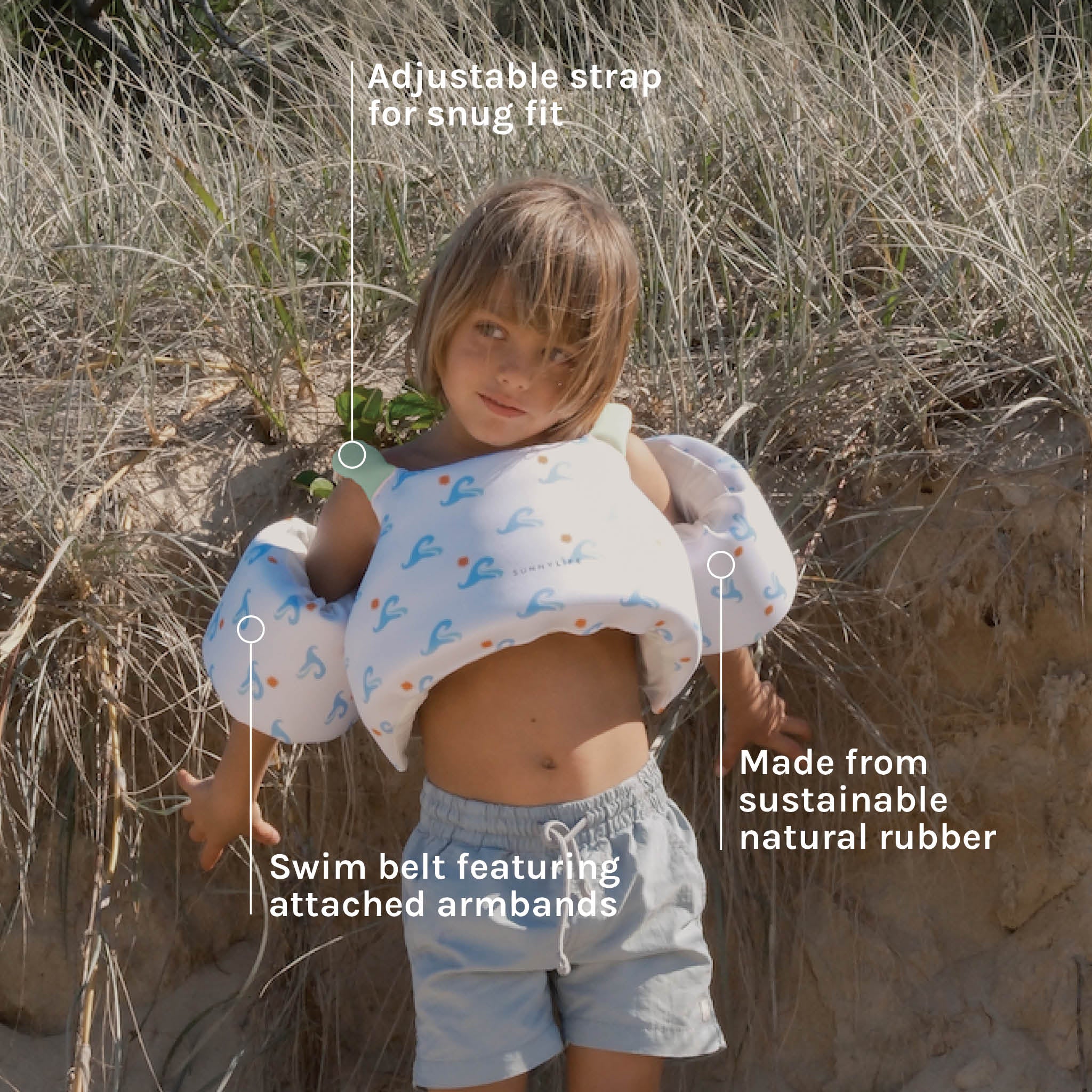 - Swim belt featuring attached armbands for enhanced swimming freedom.