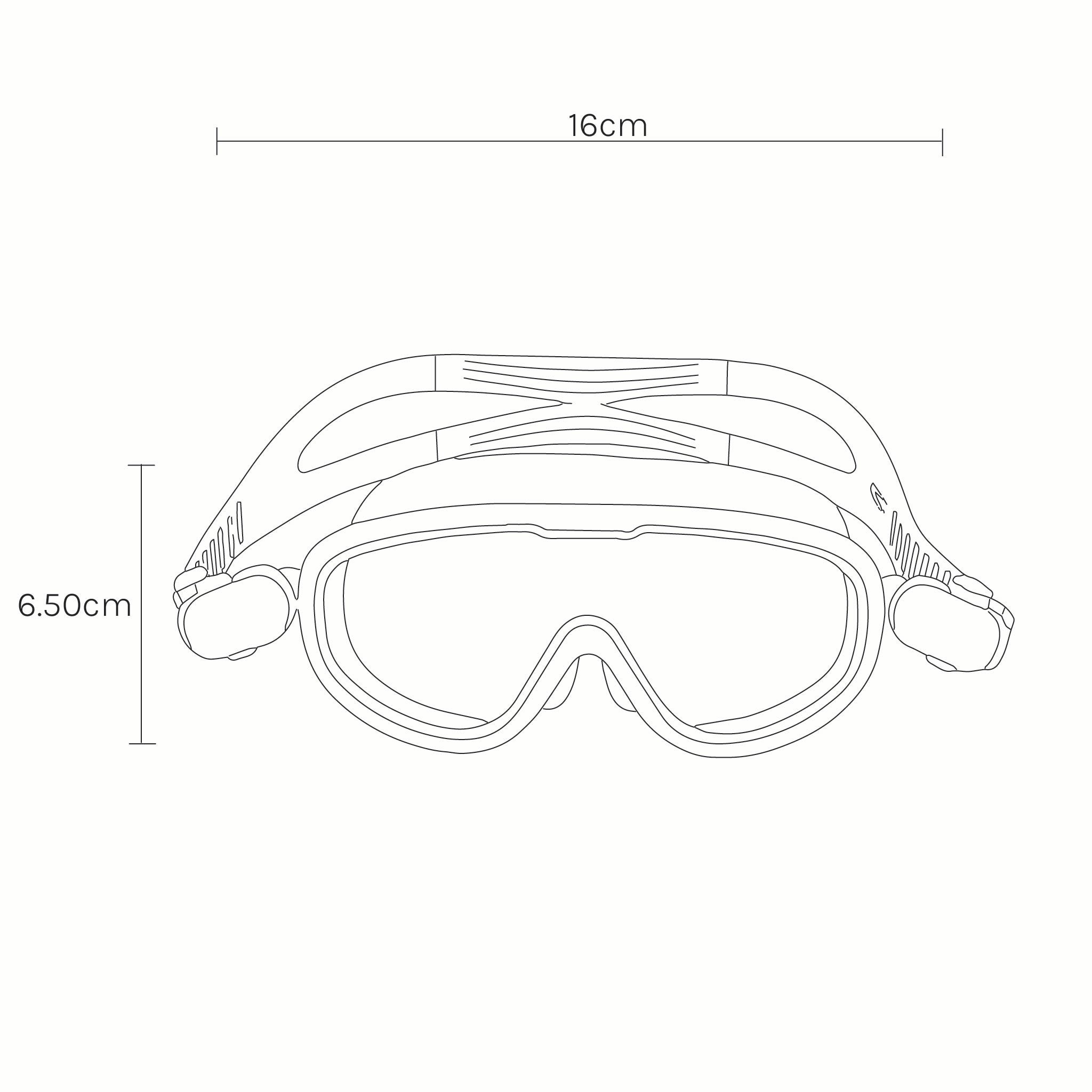 At L 16 W 5 H 6.5 cm | L 6.3 W 1.97 H 2.56 in, this Kids Swim Mask offers a snug fit and panoramic views for little underwater explorers.