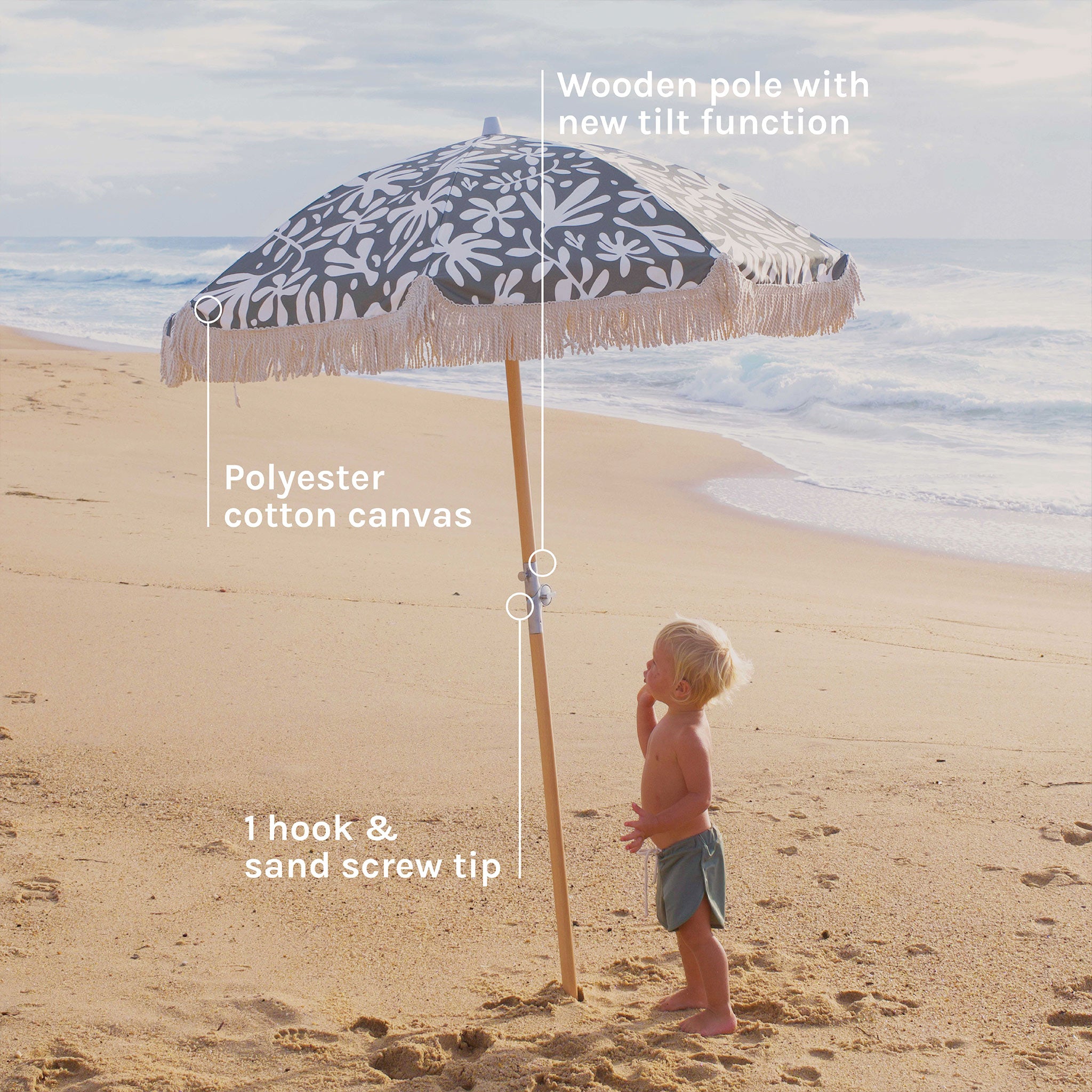 Seek all day shade with the ultimate beach companion. The Luxe Beach Umbrella is functional and chic with space for two to lounge beneath its canopy.