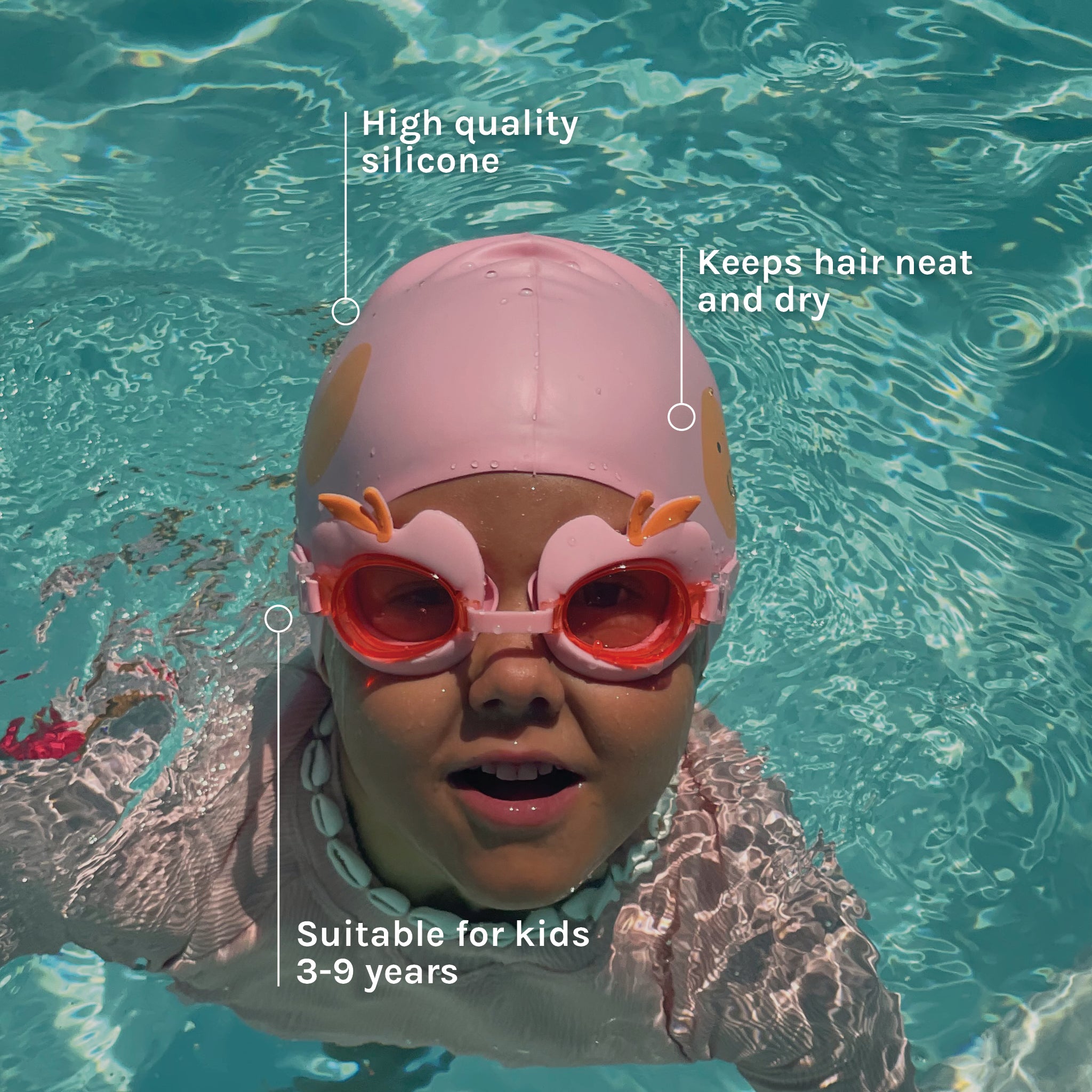 The SUNNYLiFE Swimming Cap is made from soft flexible silicone, it's the ultimate solution for keeping your child's hair out of the way while they conquer the pool. Boost water confidence, make a splash, and experience the best of summer with summer's cutest accessory.
